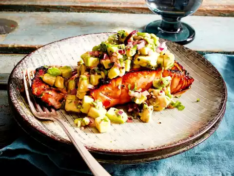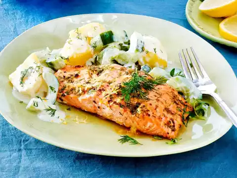 Honey Salmon With Cream Cucumber-potato-vegetables