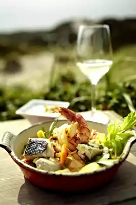 Zander With Mustard Foam And Belugalin Lentils In A Filo Basket