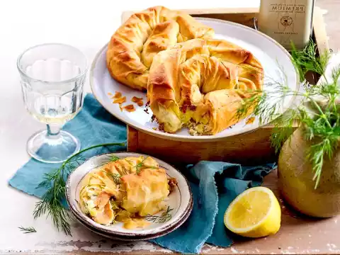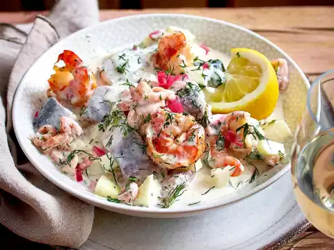 Salmon With Tomato-shrimp-crust With Potato Dumplings And Creamed Savoy