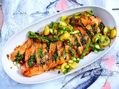 Filled Salmon Fillet With Asparagus And White Wine Potatoes