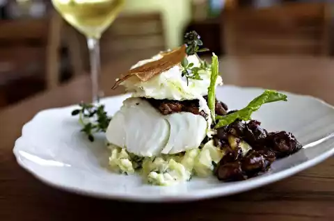 Cod With Baked Egg And Mushrooms