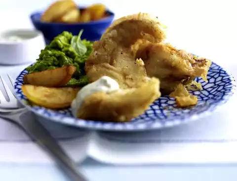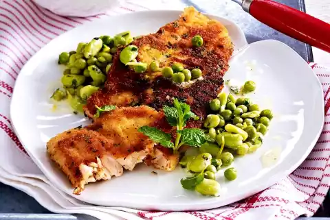 Fried Fish With Mint Pea Puree