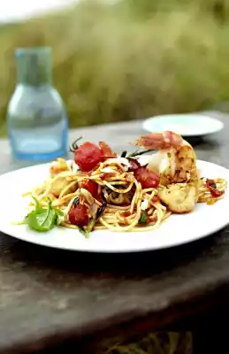 Spaghetti With Scampi And Spicy Tomatoes