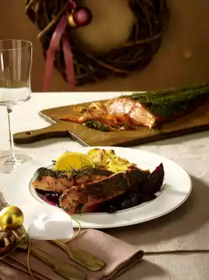 Christmas Salmon With Potato Gratin & Vanilla Beetroot