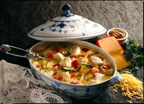 Fish Ragout In Cheese And Mustard Sauce
