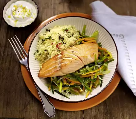 Salmon On Leek And Carrots With Couscous