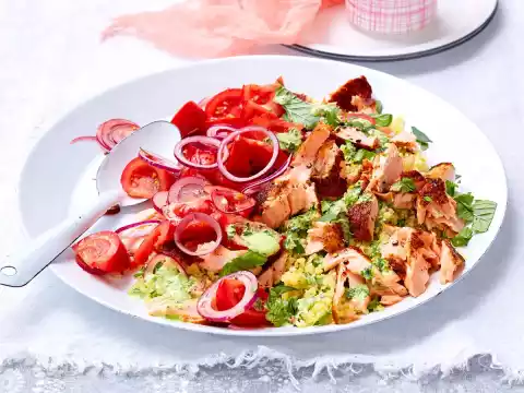 Spicy Salmon On Herb Bulgur Salad