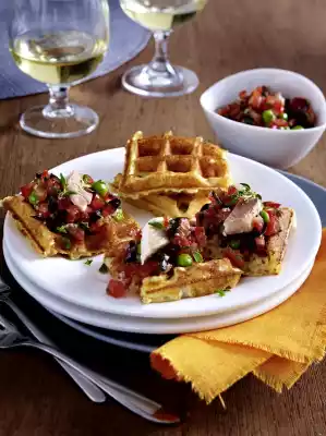 Waffles With Tomato And Trout Mix