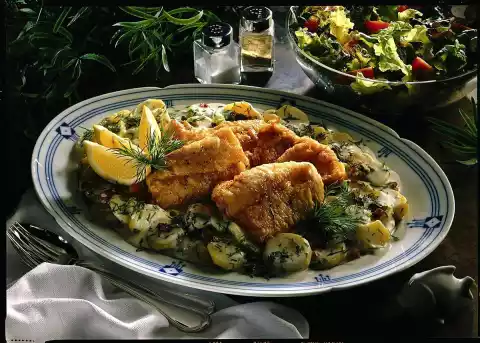 Stuffed Fried Fish With Lukewarm Potato Salad