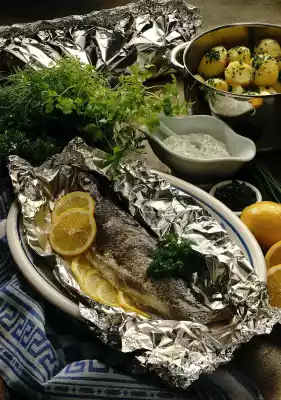 Redfish Fillet With Chervil Sauce And Cucumber Salad (low Calorie)