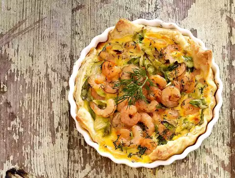Puff Pastry Quiche With Shrimps & Dill