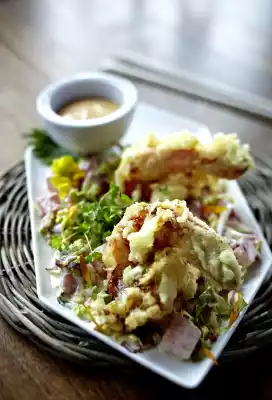 Tempura Prawns On Melon Salad