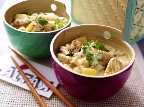 Thai Pineapple Fish Noodles With Creamy Coconut Milk Sauce