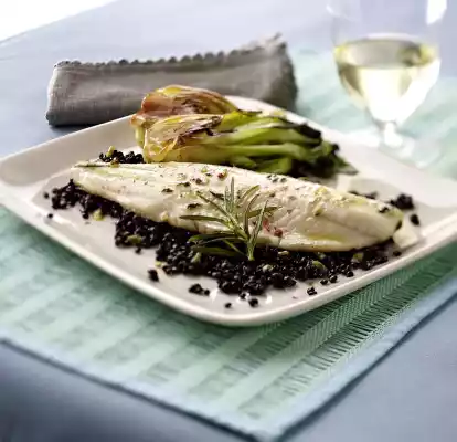 Fried Pike-perch Fillet With Passion Fruit Lentils And Pak-Choi