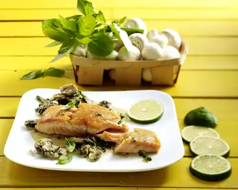 Salmon Fillet With Mushrooms And Basil