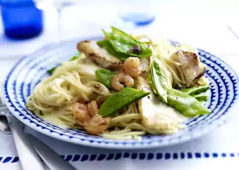 Lime Cream Sauce With Scampi And Noodles
