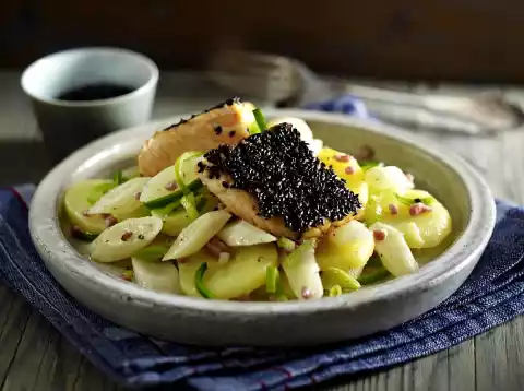 Sesame Salmon On Black Salsify