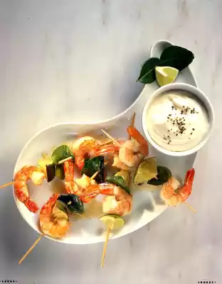 Roasted Salmon Skewers On Potato And Spinach Salad And Dill Vinaigrette