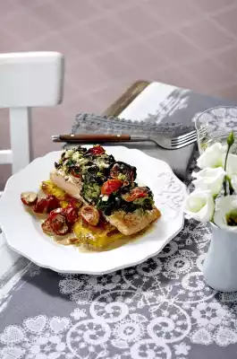 Steamed Salmon Slices On Herb-horseradish Mousse
