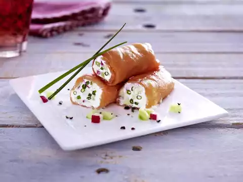 Salmon Rolls With Horseradish Cream, Cucumber And Radish