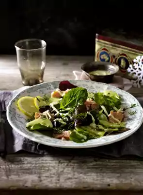 Leaf Salad With Stremel Salmon & Wasabi Cream