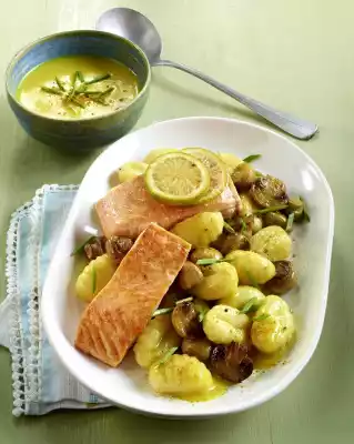 Roasted Salmon Fillet With Mushrooms And Gnocchi