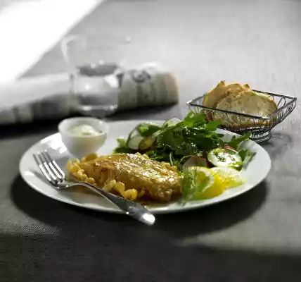 Pollock Fillet With Mustard Sauce And Potato-cucumber Salad