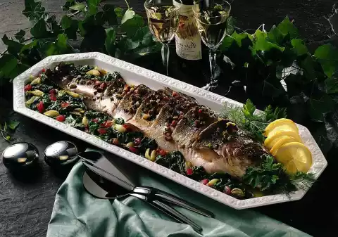 Salmon Trout On Leaf Spinach