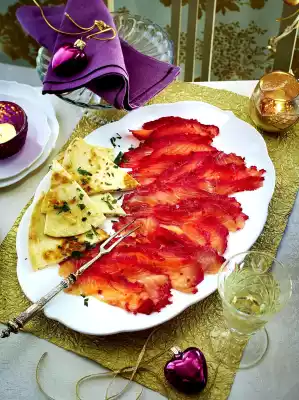 Beetroot Salmon With Cream Cheese Horseradish Quesadilla