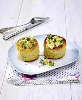 Ragout Fin With Salmon, Broccoli, Curry And Peanut Kernels