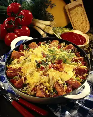 Fried Fish Fingers On Vegetable Rice