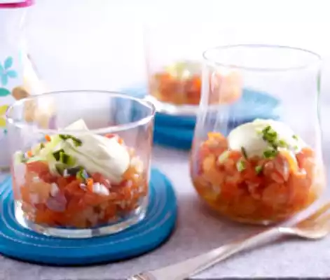 Salmon Tartare With Cucumber, Caviar And Wasabi Cream