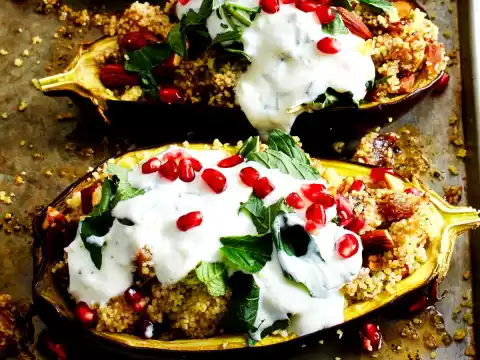 Aubergines With Date Almond Couscous And Mint