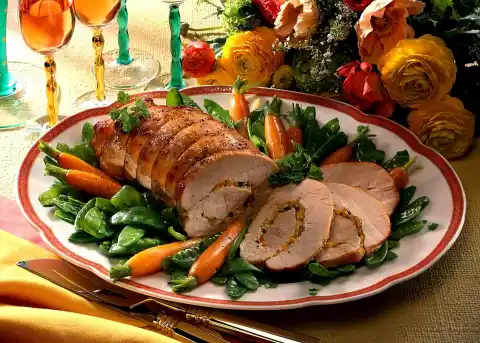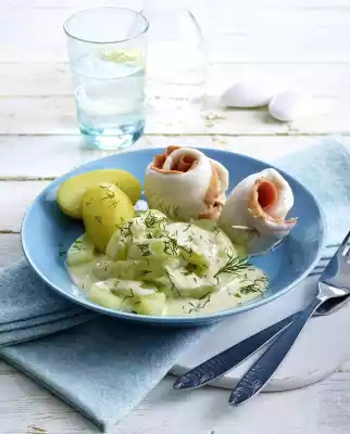 Plaice And Salmon Rolls On Braised Cucumber Vegetables