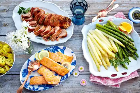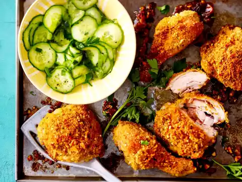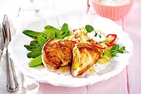 Roast Turkey From The Oven With Pepper Sauce, Noodles And Broccoli