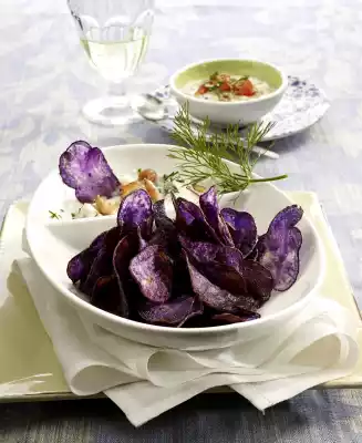 Blue Potato Chips With Two Different Dips