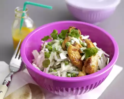 Kohlrabi Pea Salad With Coriander Yoghurt Sauce