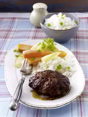 Minced Steak With Kohlrabi-carrots In Chervil-lemon Sauce And Rice