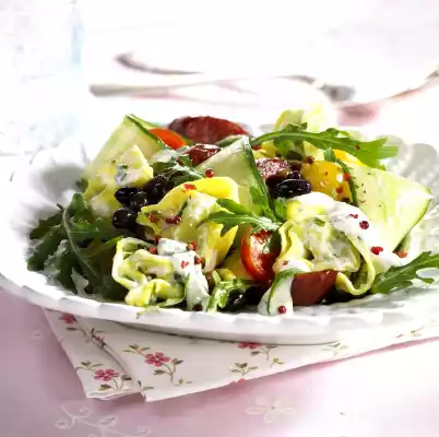 Ribbon Noodles With Pumpkin, Avocado And Steak Strips