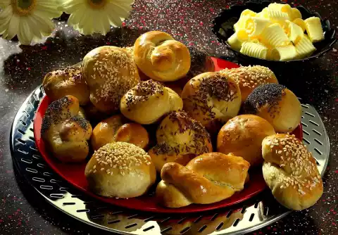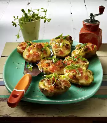 Colorful Potato Salad With Carrots, Spring Onions And Snow Peas With Cress And Cream Cheese Sauce