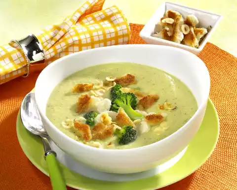 Cauliflower And Broccoli Cream With Nut Croutons