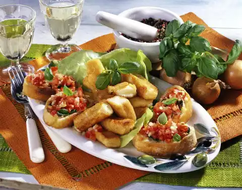 Mozzarella Sticks With Tomato Crostini