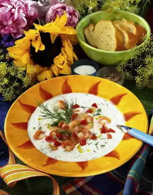 Wine Soup With Leek And Slices Of Bread Topped With Cheese