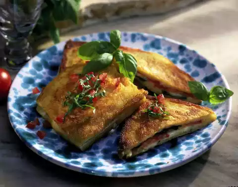 Carozza (baked Tomato Mozzarella Toasts)