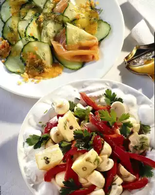 Cucumber Salad With Dill Cream And Salmon Cubes