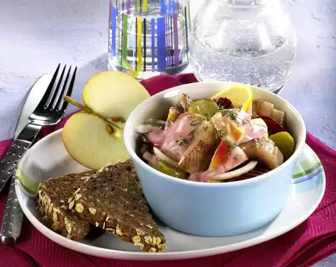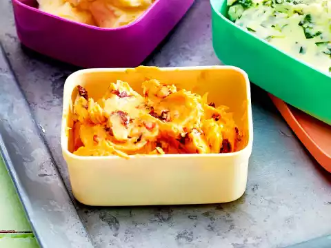 Kasselerkrüstchen In Cheese Cream Sauce With Mashed Peas And Potatoes