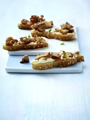 Mouthfuls Of Mashed Potatoes With Cured Ham, Emmental Cheese And Mustard