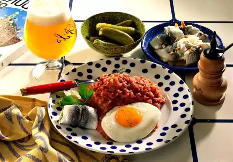 Sweet Potato Salad With Breaded Goat Cheese And Walnut And Apple Sambal