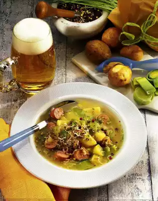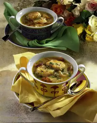 Gratinated Meatballs In Onion Sauce With Mashed Potatoes