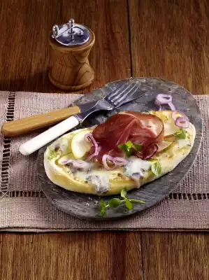Pizza Tongues With Gorgonzola, Pears And Tyrolean Bacon